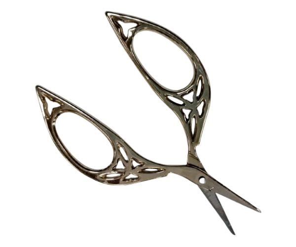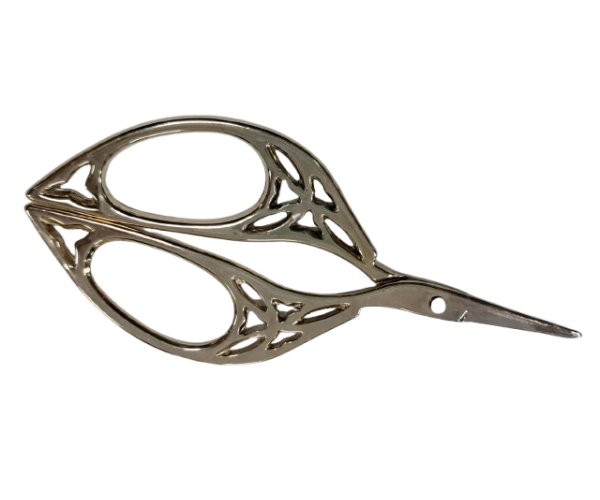 These scissors are a vintage style that measure 4-1/8" or 108 mm from end to end. They have a sharp point and perfect for cutting with most small crafts such as embroidery and cross stitch floss, crewel yarn, sewing thread, paper and thin cloth materials.