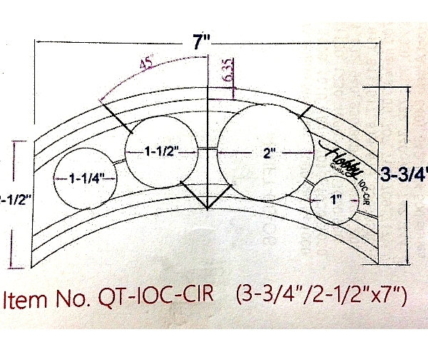 Item No. QT-IOC-CIR-3 (3-3/4″/2-1/2″x7″) All Hobby Quilt ruler templates are laser-cut from 3mm acrylic and laser-engraved (etched) on the back side to reduce parallax errors and for long-lasting accuracy when quilting This special design "inside-out-curve" shape template will allow you to stitch the same curves of both sides on long arm quilting machine or high shank or industrial shank home sewing machines. It is designed with 1/4" etched lines marking on both sides. The thickness 3mm is enough for safety when used with low shank home sewing machine foot shank clearance. There are 4 mini circles 1in, 1.25in, 1.5in and 2in dia. to create mini circles 1/2", 3/4", 1" and 1-1/2". This template will allow the quilter to create numerous shaped curved lines or designs on the quilt on long arm or mid-arm quilting machines with the use of special ruler foot 1/4" which you can order in our store. The thickness 3mm is enough for safety for low shank home sewing machine foot shank clearance arm or mid- We recommend you to use ruler gripping dots (GR24) to be attached under the template to avoid slippery. You can also order from our store. Note: Picture shown is with "red" marking line. However, the product is engraved/etched by laser without color. We recommend you to use "water-based" marking pen preferable in "red" or "pink" color to color the etched markings/lines for better visibility. |