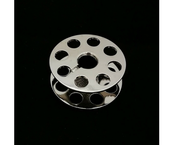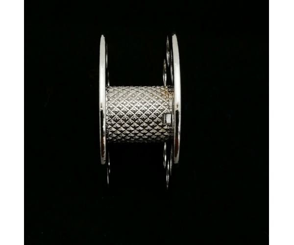 "M" style large bobbins, steel (nickel plated) with knurled stem for quick winding for most long arm quilting machines - Gammill, Innova, Nolting, Handi Quilter, Tin Lizzie etc. 5 pcs per pack. Precision made in Taiwan.