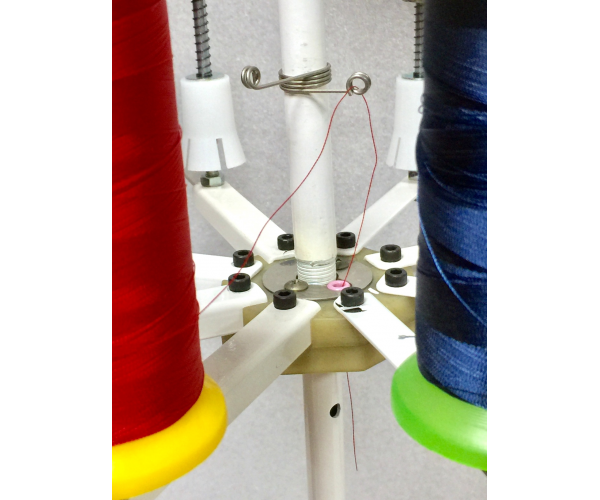 The thread cone turns sychronusly as the sewing speed so as to eliminate twisting, pooling, breakage and frustration esp. metallic and delicate specialty thread.
