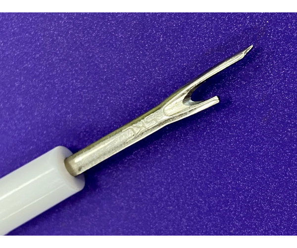 It is a small tool designed to make a quick and easy job of unpicking stitches. Used also to slash open buttonholes it really is a very handy tool.