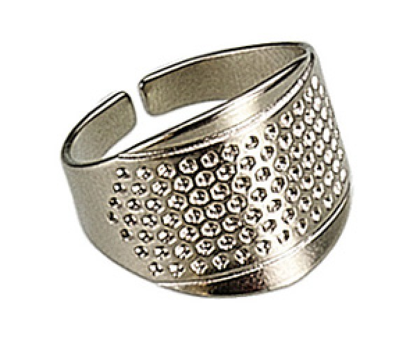 A wide ring which allows pushing the needle with the side of the finger.