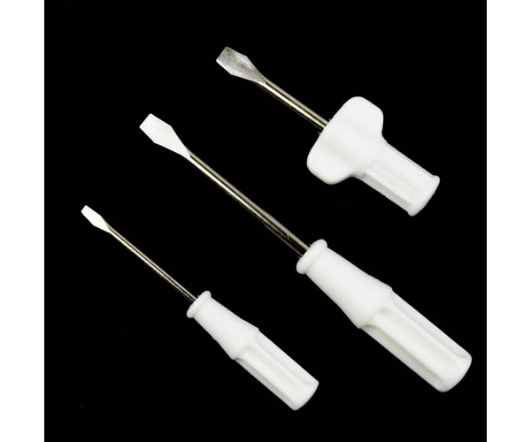 3 different size screwdrivers specifically designed for sewing machines and overlockers/sergers. There is one (large 110x5mm) designed for removing the machine's top and side covers. Also one short (wing) screwdriver (70x5mm) designed to make removing the machine's needle plate a breeze. And one small screwdriver (78x2.5mm) that is just the right size for adjusting your machine's bobbin case tension.